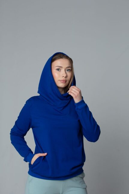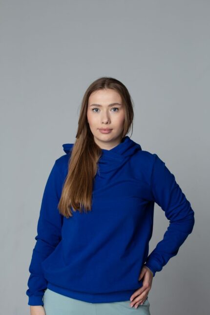 Damska bluza z kapturem – intensywny kobaltowy niebieski