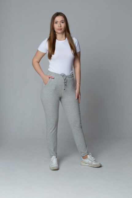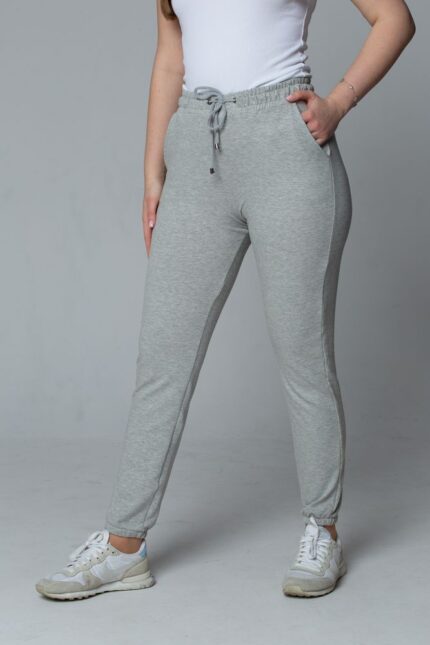 Damskie spodnie dresowe joggery z wiązaniem – szare