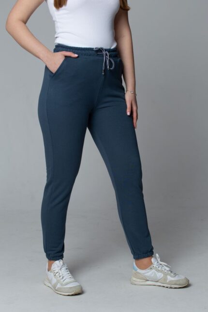 Damskie spodnie dresowe joggery z wiązaniem – granatowe